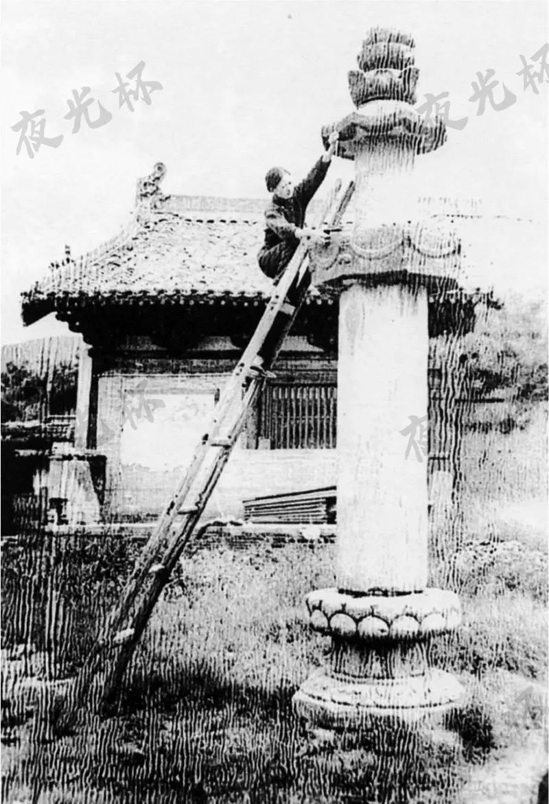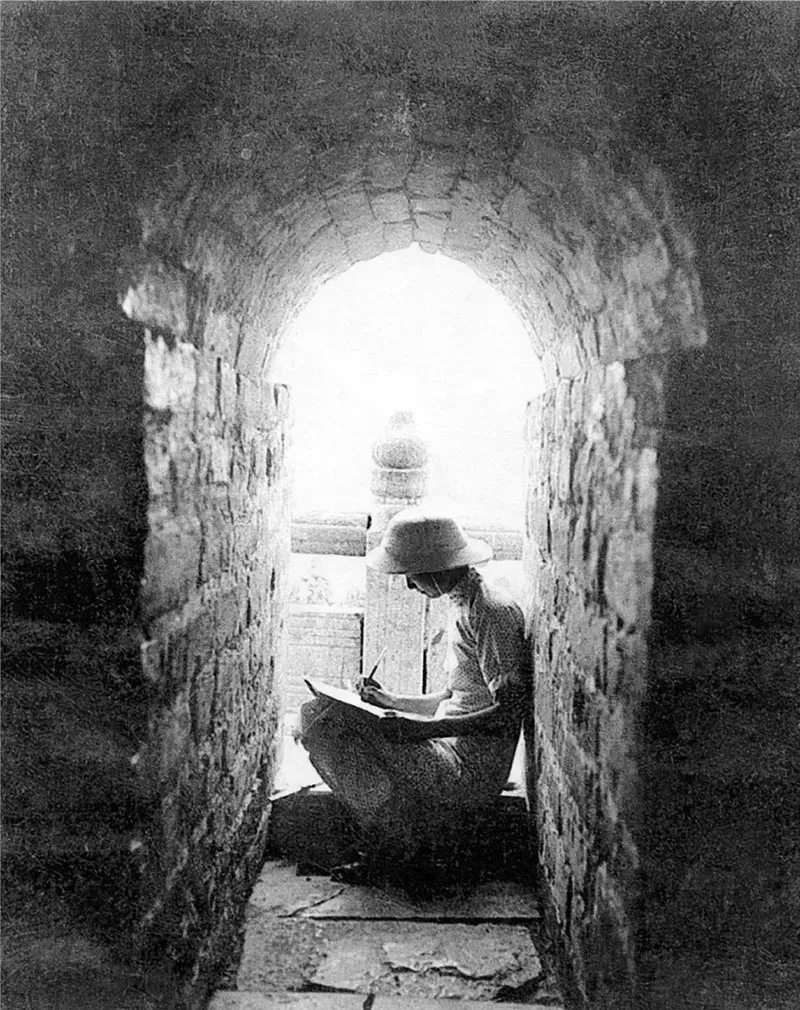1937年7月,林徽因在山西五台县佛光寺院内测绘经幢