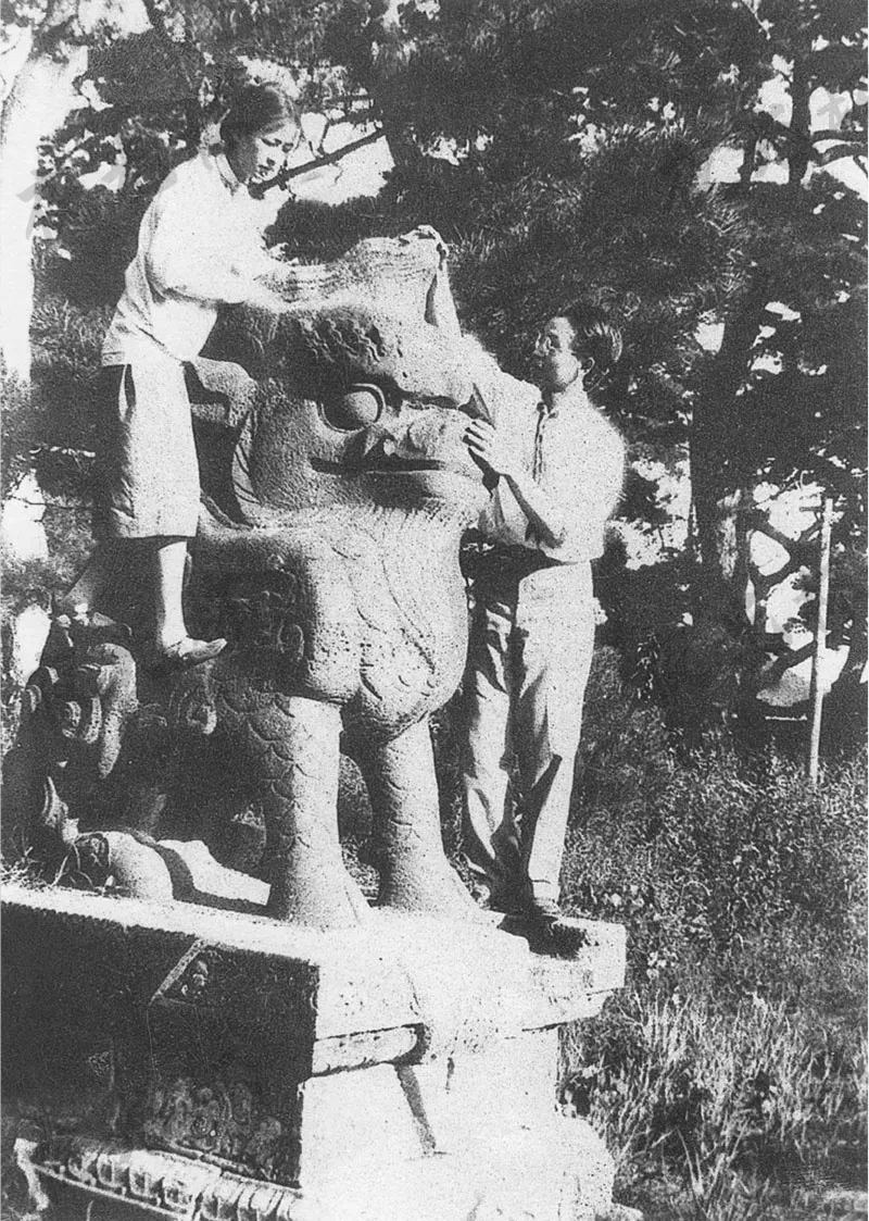 1929年,梁思成与林徽因在沈阳北陵测绘