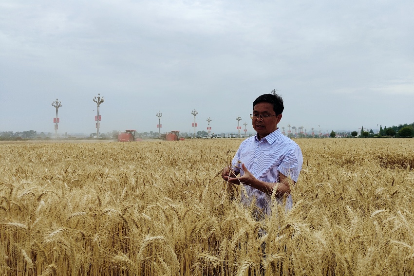 “汤博士”,是国家小麦产业技术体系岗位科学家、四川省农业科学院作物研究所研究员汤永禄。一个月前的小麦测产,他和杨萍“同台竞技”——5月15日,四川广汉国家现代农业产业园专家试验田和种粮大户的高产田进行了同步测产。经过机械化收割、称重、测水分等环节,验收组最终确定最高田块亩产为688.9公斤。