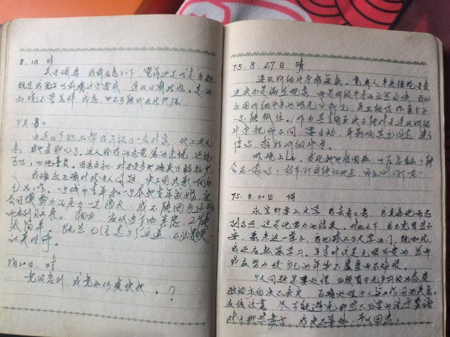 日记应该是隐私,却要给别人看,甚至会被批注或传播。那时候的日记,满是豪言壮语,像是被上了发条的机器,不停地重复着同样的话语。不敢真情流露,就怕哪一句话说错了,被打上不好的标签。可即便如此,如今看来,每一个字都是我们青春的注脚,记录着那个特殊时代的心跳。