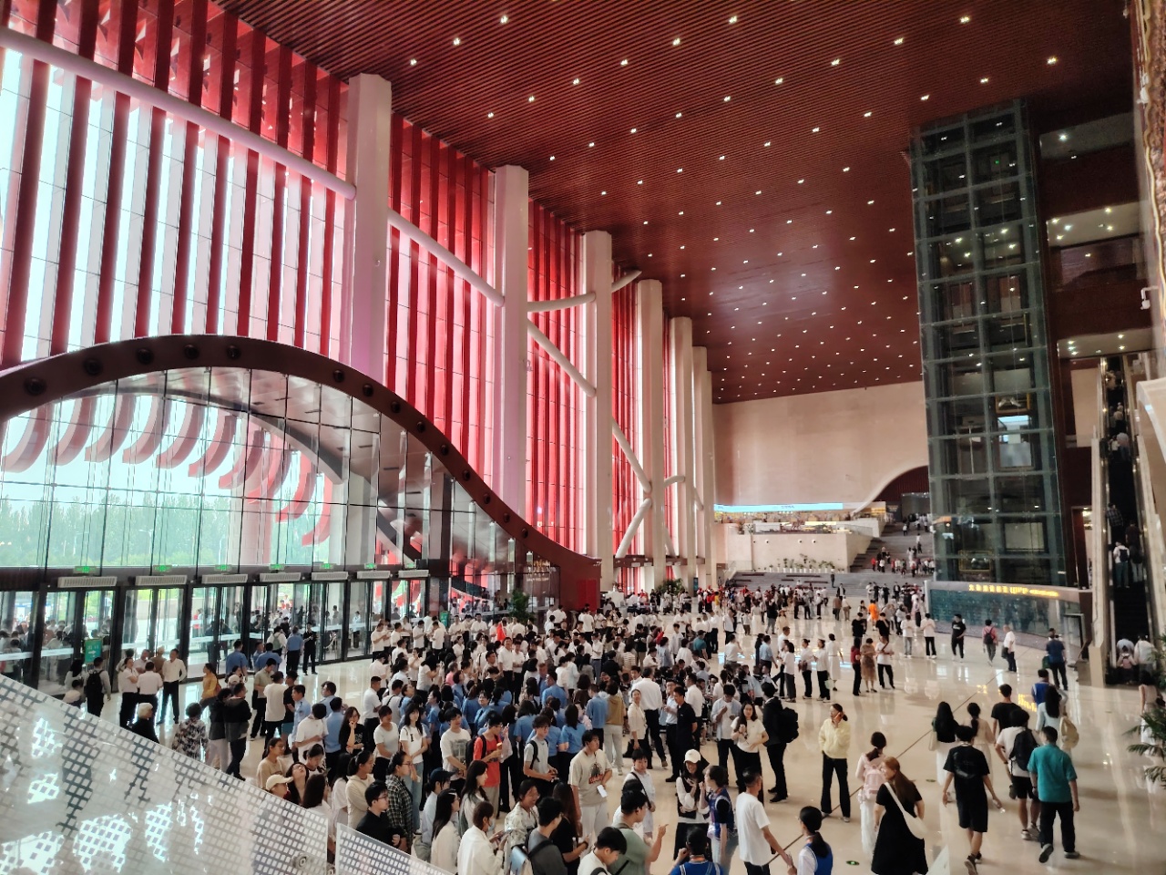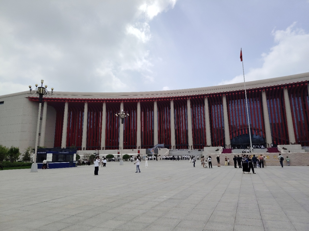 我们下得车来,顿时眼睛一亮,一座中国红的恢宏建筑拔地而起,震撼人心。走进展馆,人流如织。恰逢七一建党日,见到很多带着党徽的人员正在此搞党建活动,还有好多小朋友在馆内研学,增长见识。