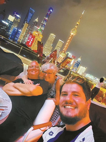 阿什顿(右)邀请父母来上海旅游。视频截图