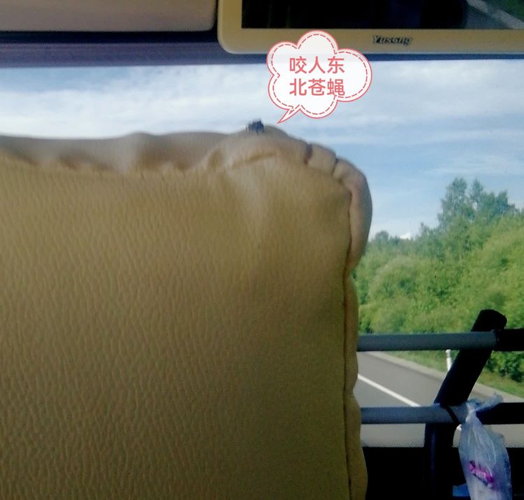 汽车在高速公路龙镇服务区停车休息,无畏的北方精灵东北苍蝇飞进车厢内,赶都赶不走。