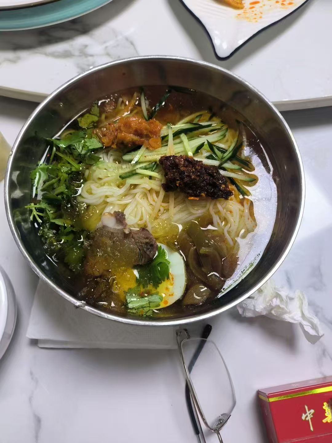 感谢鲜族村游。学生驾车特意带我去了萝北的一个朝鲜族村落,走进村子,鲜花盛开,具有民族特色的周边环境,直觉干净。说是朝鲜族主打菜狗肉,我不吃,而那一碗酸甜口味的凉面,还很入口,我也是第一次品尝。
