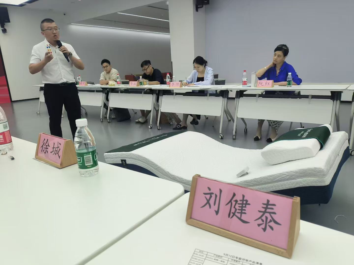 整整一天,对前来展示的床椅一体机、电动护理床、智能床垫、肌肉刺激器等适应老年人养老的器具,按具体细项,逐一打分评议。