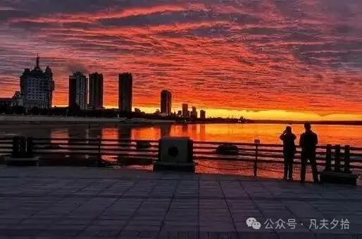 黑龙江的晚霞格外不同,墨绿色的江面上,像一块漫无边际的、猩红的织锦缎,一直铺到看不见的、国土的尽头。它该是见过多少沧桑,又默默承载过多少无声的心愿呢?那时我们曾是知青,能到黑河的江边看一看,也是件愉悦的快事,黄昏时节,我们常常并肩站在江岸上,静静地站着眺望着,谁也不说话,就看那霞光怎样一点点暗下去。它从不在意有没有人欣赏,只是按着自己的节奏,燃烧,然后沉寂。那一刻,我们伫立在黑龙江晚霞燃烧的江边,心里想的却是何时能回到上海,可以看一眼黄浦江的晚霞……
