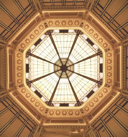 和平饭店的装饰艺术利用几何形状和线形对称塑造自信、优雅、力量的平衡,它的灵感来自古阿兹特克及古埃及的几何图形。