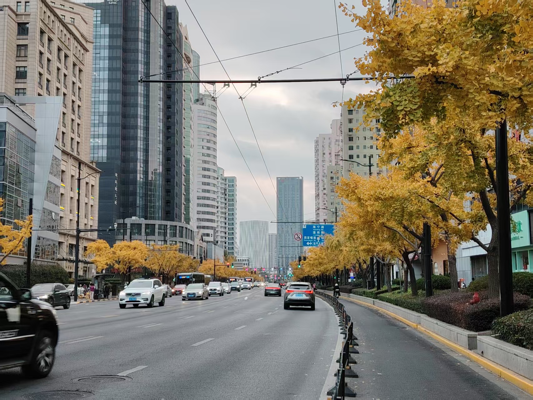 12月3日,上海市四平路临平北路两边的银杏树。日升摄