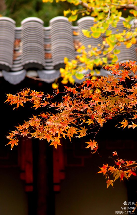 十一月十六日 进入十一月,真是一天一个样,主道两边的北美枫一下子就红了起来,木作学堂里的枫叶、乌桕衬得这些古建格外亮堂,
