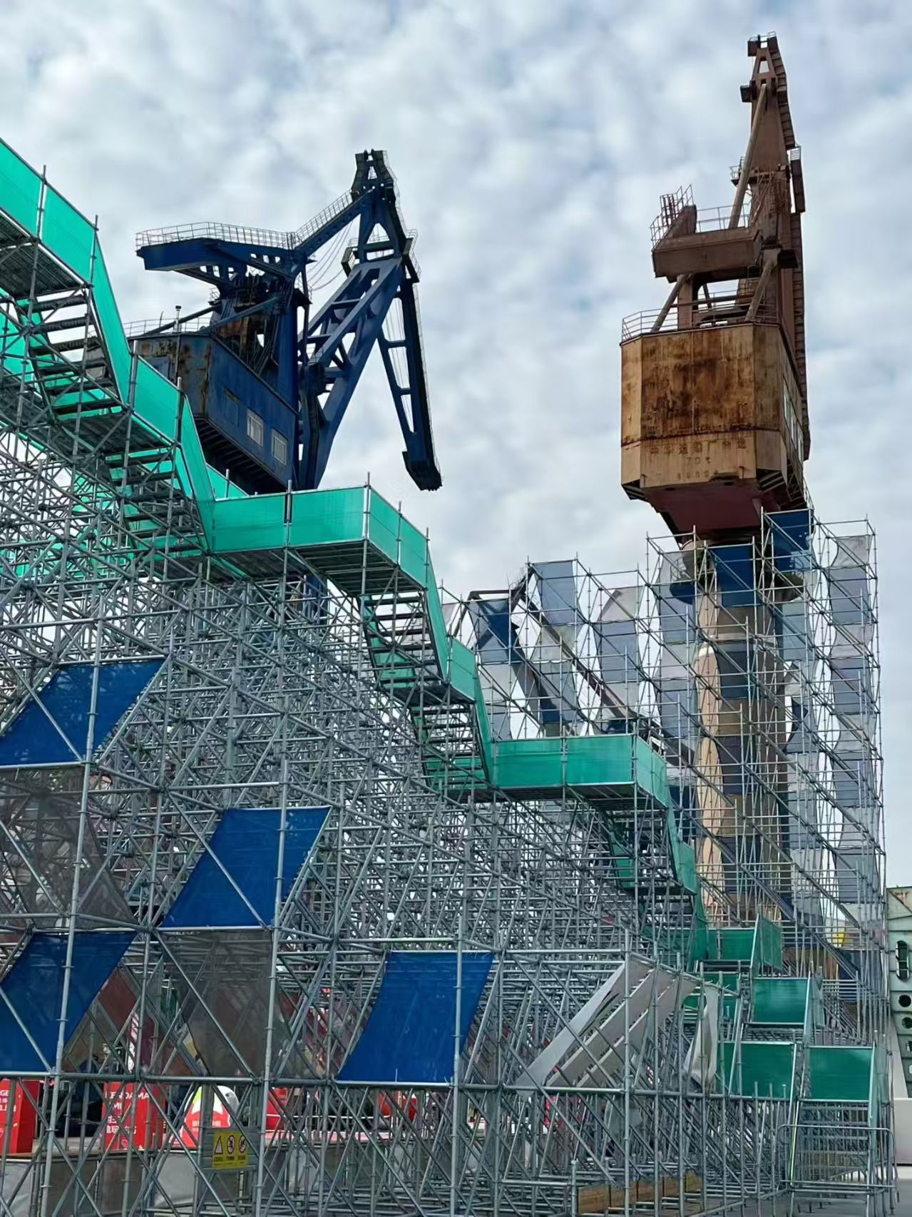 天气格外的好,艳阳高挂,不冷不热,太适合游走了。来到复兴岛船台公园,第一感觉宽阔大气。原是中华造船的旧址,现蜕变为船台公园,仍四处可见当年专门生产各类驱逐舰护卫舰,中国海军的重要造船基地的风彩。