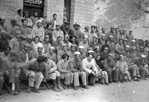 后排由左到右:陈云、秦邦宪(博古)、彭德怀、刘少奇、周恩来、张闻天(洛浦)