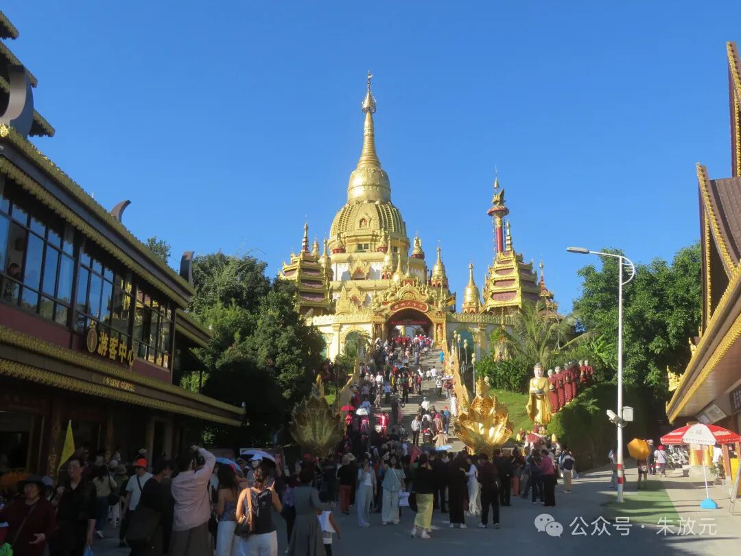 这次去云南,才知道勐焕大金塔是2007年5月才主体竣工并开光的,它有中国第一金佛塔、亚洲第一空心佛塔之称。它金光闪闪,富丽堂皇,让人惊叹不已。