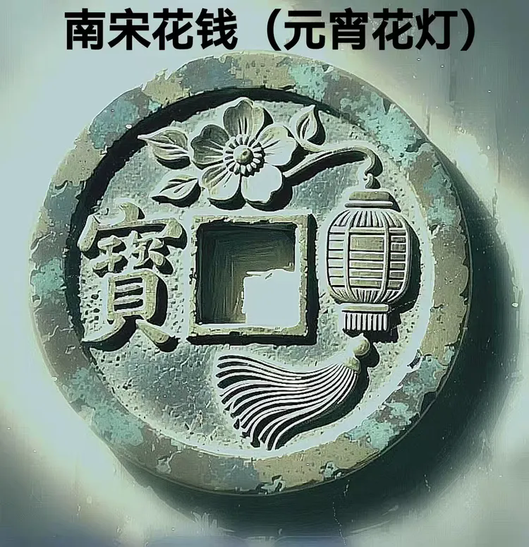 南宋的上元夜该是何等繁华?我总爱对着这枚钱币想象:临安城的御街上,“东风夜放花千树,更吹落、星如雨”,仕女们提着相似的花灯走过,衣袂飘香;夜市上的糖画摊冒着热气,孩童们举着糖龙在人群里穿梭。