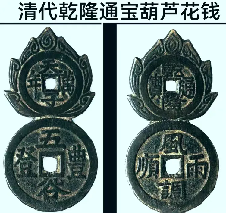 这枚形制别致的清代“乾隆通宝”葫芦花钱,葫芦谐音“福禄”,本就是吉祥之物。