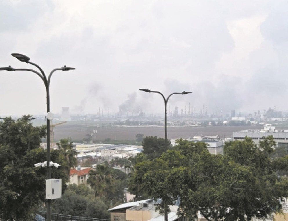 3月19日,以色列海法炼油厂遭袭,冒出浓烟。新华社发