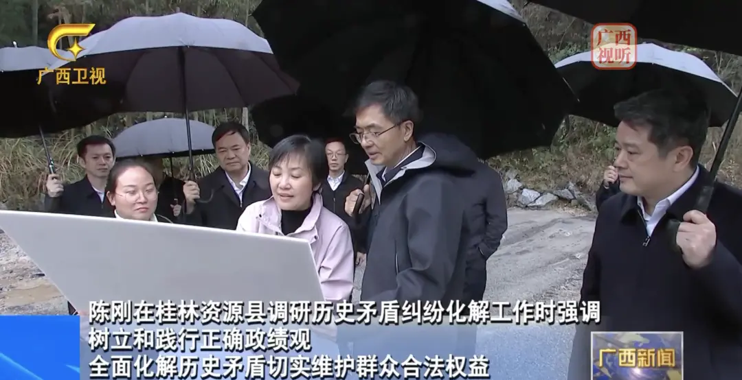 3月19日,广西壮族自治区党委书记陈刚深入桂林市资源县调研历史矛盾纠纷化解工作。