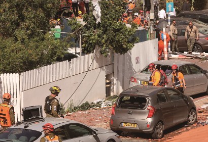 3月20日,在以色列中部城市雷霍沃特,应急反应人员在一处导弹袭击点开展工作。 新华社发