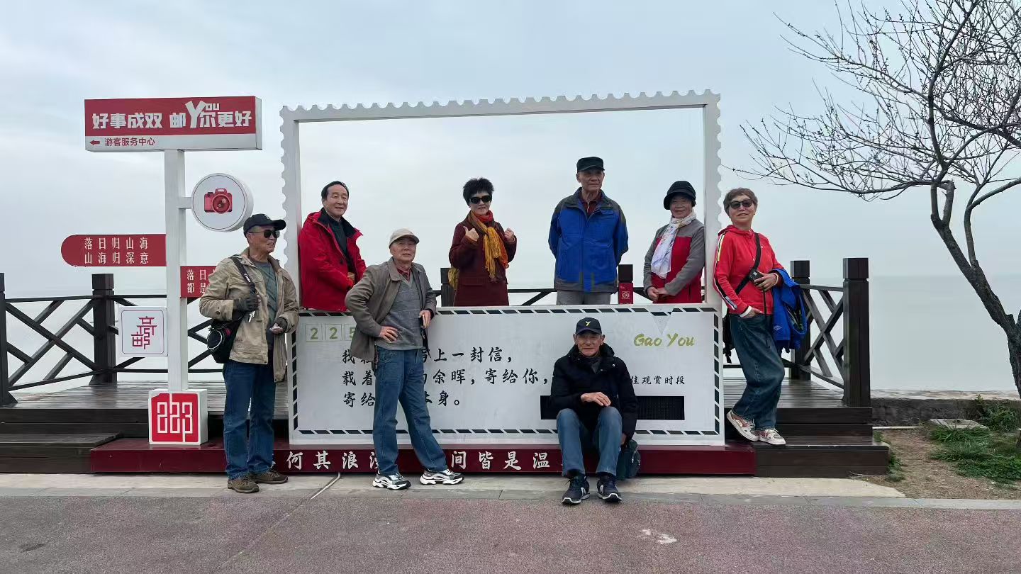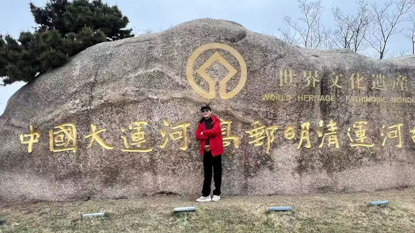 清晨的薄雾还未散尽,我们便站在了中国大运河·高邮明清运河故道的石碑前。这块镌刻着世界文化遗产的巨石,静静诉说着千年漕运的繁华往事。脚下的草色虽还带着些浅黄,却已能嗅到春的气息,就像我们这群鬓染霜华的老友,历经岁月沉淀,依旧怀揣着对生活的热忱。大家围坐石前,快门按下的瞬间,定格的不仅是身影,更是那段跨越半个世纪的情谊——在这“楚国舟船路”的起点,我们用重逢,温柔地消解了别离的惆怅。