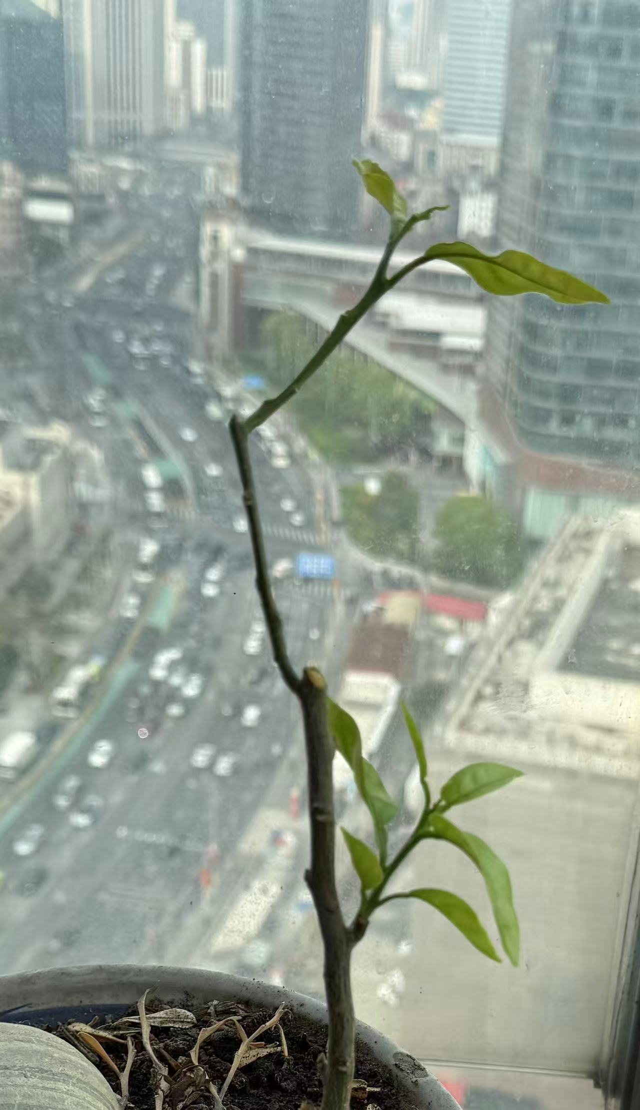 在城市高楼的缝隙里,一株小树苗被种在窗台的花盆中。它纤细的枝干微微倾斜,仿佛在向窗外张望一那里是车水马龙的街道,高耸入云的楼宇,还有无数匆忙穿梭的身影。