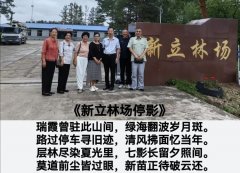 朋友冯延吉邀请,行驶八十多公里去军马场参观北大荒精神传承教育基地,山道蜿蜒,雨脚时急时缓。车窗蒙了雾气,手指一抹,便是半幅水墨:远山浓淡相间,近树影影绰绰,如宣纸上渐次晕开的墨痕。 汽车缓缓驶过新立林场,我们停驻在大门前,指尖轻抚过岁月雕琢...