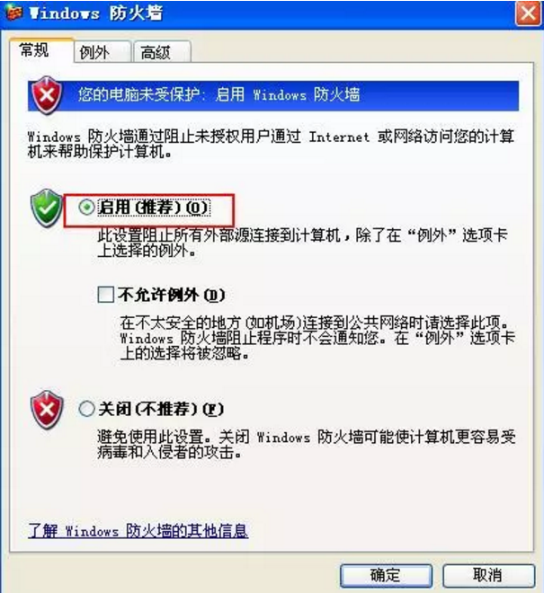 XP系统的处理流程 1、依次打开控制面板,安全中心,Windows防火墙,选择启用