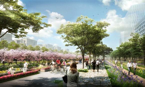 徐汇滨江云锦路跑道公园效果图。 来源:西岸集团 拥有林荫道最多的区:静安17条、黄浦16条 在上海市中心的市级林荫道中,静安区以17条的数量拔得头筹,黄浦区16条紧随其后。 而从林荫道的分布密度上看,黄浦区的打浦桥至淮海中路商圈一带,毫无疑问是上海林荫道最密集的区域,有包括淮海中路、瑞金二路、绍兴路、思南路在内10余条市级林荫道。 上世纪80年代末,为了配合地铁建设,淮海中路近黄陂南路、陕西南路、茂名路、常熟路和高安路一带有近280棵梧桐树被移植到中山南二路、蒙自路等处;1996年,96棵梧桐树回归淮海中路,使得西藏中路至陕西南路长达2.2公里的路段两侧梧桐数量达到426棵。每10米就有一棵梧桐树的淮海中路,也成为上海最长、历史最悠久的林荫道之一。 与各中心城区动辄有一、二十条市级林荫道相比,沪上几个郊区的市级林荫道数目实在算不上多,最多的松江区也只有11条。 不过,“山不在高,有仙则灵”,由于各郊区在林荫道的品质和特色上下足了功夫,使得每条道路都颇具独特韵味,反倒有几分“物以稀为贵”的意思。 最“有生活气息”的林荫道,竟在金山—— 金山的市级林荫道共有七条,且短小精悍。柳城路只有725米,金零路550米,最长的隆平路也不超过2公里。不过,这些林荫道却全部集中在石化街道,且路两旁均是充满生活气息的居民区、社区公共设施等。 道旁种满悬铃木的柳城路,位于石化六村和石化八村之间。金山老年大学、第二少年宫、石化社区文化活动中心也座落在这个路段。平日里,来来往往的居民不少,有拎着马夹袋买菜的老阿姨,有穿着时髦的年轻女孩,也有充满朝气的中学生,给仅有两条车道的窄路增添了不少烟火气。 隆平路是金山区第一条市级林荫道,路旁便是金山客运站和石化汽车站,每天的旅客川流不息。隆平路以香樟为行道树,南北两侧绿化带以水杉防护林为背景,配上红叶李、夹竹桃、大叶黄杨球、黄馨、洒金桃叶珊瑚、罗汉松、石榴等植物,使整条路充满了花红柳绿的朝气。 最“讲究花样”的林荫道,要数松江、闵行—— 要说几个郊区的林荫道,谁的“花样”最多?恐怕只有松江和闵行敢来争一争高下。 闵行共有9条市级林荫道,所植树种达6样之多。既有常见的香樟、悬铃木,也有在上海鲜见的品种,如金丝柳。南江燕路和北江燕路是全市仅有的两条以金丝柳为行道树的林荫道,树冠整齐统一,枝条婀娜多姿,秋冬可观枝,春夏可观“姿”。 松江林荫道的花样则体现在:同一条林荫道上种着多排姿态各异的树种。思贤路的行道树为六排,树木品种有朴树、香樟、银杏、中山杉四种。一到落叶时节,思贤路可谓是色彩斑斓。 最“朴实无华”的林荫道,在宝山—— 据说,宝山在培育林荫道时,更看重其防尘、降低噪声、净化空气和美化环境的功能。因而,在10条市级林荫道上,行道树全部为悬铃木。之所以如此“痴情于”悬铃木,背后也有讲究。 悬铃木的别称是法国梧桐,被誉为“行道树之王”。树木枝繁叶茂,犹如绿色的打伞罩在地面上,仿佛一条条绿色隧道,为路上的人与车撑起了连片的遮阳大伞。朴实的悬铃木如守护者般矗立在宝山的街头,见证着宝山的沧桑巨变。 最“直”、最“弯”林荫道,分别在奉贤、金山—— 为啥把奉贤和嘉定的林荫道放在一起呢? 因为,这两个区林荫道的特色主要体现在各具风采的道路形态上。奉贤共有7条横平竖直的市级林荫道,4条是正南正北方向,3条是正东正西方向。最长的环城西路林荫道约2公里,行道树是香樟和朴树。放眼望去,挺拔的树木犹如训练有素的军队,整齐地排列在笔直的道路两侧,肃穆而庄重。 而嘉定的林荫道则是另一种风情。7条林荫道里,有3条是曲曲弯弯的。其中,种着悬铃木的金沙路呈半圆形,而金沙路北段则呈直角形。走在嘉定的林荫道下,随时都能体会到一种“柳暗花明又一村”的美感。 最“诗情画意”林荫道,在青浦、崇明—— 青浦有7条市级林荫道,光是名字就颇有韵味——淀湖路、青竹路、珠溪路……青竹路以北是青浦赏樱和拍照的好去处北菁园,珠溪路以东则紧邻朱家角大淀湖。与自然园林、湖泊的有机结合,让青浦的林荫道多了几分诗情画意。 在崇明,7条市级林荫道有4条以水杉为行道树。水杉是乔木,高达30米左右。树干通直挺拔,高大秀颀,树冠呈圆锥形,夏季叶色翠绿秀丽,入秋后变成金黄。位于崇明横沙乡的东江路,两侧有多排不规则栽植水杉林带,形成了“自然式林荫道”。 一张“立体绿化”大网,已在城市里铺展开来 今年,上海市政府工作报告提出,不仅要新建1200公顷绿地、213公里城市绿道,还将建设40平方米的立体绿化。