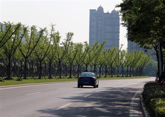 长宁区市级林荫道愚园路,道路两旁是近百岁的悬铃木。 张弛 摄 拥有五排行道树的“豪华版”林荫道,在徐汇滨江—— 紧挨着黄浦江的龙腾大道,是近年来上海“高大上”路段中的新贵,也是“颜值”颇具特色的路段。 目前,龙腾大道建成段长达3.3千米,北起日晖港,南至龙水南路,因道路地坪整体抬高,成为浦江两岸唯一可驱车看江景的景观大道。大部分林荫道,是在两侧有高低错落的绿化植被,但龙腾大道不仅在东侧沿江开放空间的步道种植了两排银杏,道路的中央分隔带和机非绿化带也种植了三排法国梧桐,形成五排行道树的绿化种植骨架。 与龙腾大道仅隔一个街区的云锦路,位于徐汇滨江西侧腹地,北起丰谷路、南至龙水南路,原本是龙华机场跑道,现在长度为1.7公里。道路中央分隔带种植的两排银杏呈“品”字形,两侧的机动车和非机动车道绿带以及人行道共种植了四排无患子,整条道路形成六排行道树的绿化种植骨架,未来结合道路西侧在建中的跑道公园,将组成一条水系和绿地穿插,汽车、自行车、人与河流并行不悖的综合绿道。