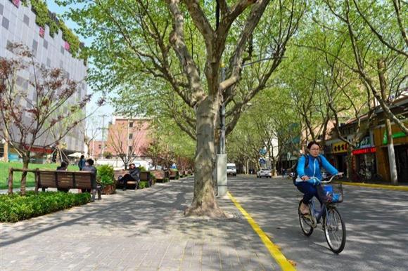 上海市区老洋房周围随处可见的绿荫。 供图:徐汇区湖南路街道 那么,对于身边出现的这些绿色新景观,百姓“感受度”、“获得感”到底如何? 各区的景观林荫道,有怎样的“个性” 去年9月,上海新增22条林荫道,使得全市的景观林荫道总数达到175条。 有树、有树荫的马路,就是林荫道吗?那可不一定。据介绍,林荫道的基本标准,包括长度不小于500米的完整路段、非机动车道和人行道绿荫覆盖率超90%、四车道以下机动车道绿荫覆盖率超50%、四车道及以上机动车道绿荫覆盖率超30%等。 在去年新增的市级林荫道中,黄浦区的嵩山路(太仓路-金陵中路)、静安区的常熟路(长乐路-华山路)、徐汇区的龙腾大道(瑞宁路-龙耀路)、长宁区的茅台路(遵义路-古北路)等,都是中心城区中市民耳熟能详的路段。