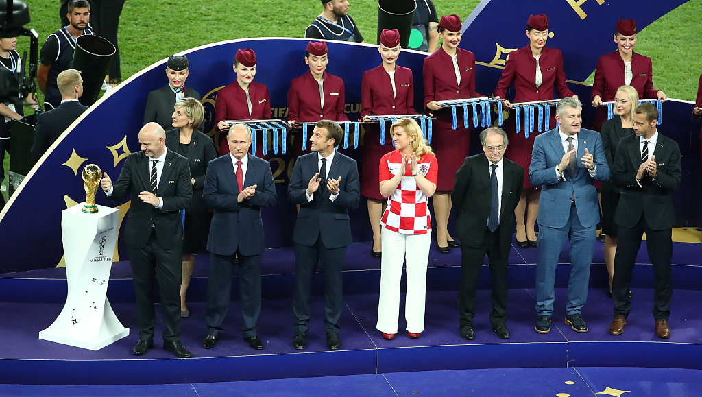 莫德里奇获得金球奖,姆巴佩获得最佳年轻球员奖,金手套则是库尔图瓦获得。 出场阵容: 法国:1-洛里/21-卢卡斯-埃尔南德斯、5-乌姆蒂蒂、4-瓦拉内、2-帕瓦尔/6-博格巴、13-坎特(53’恩宗齐)、14-马图伊迪(73’托利索)/7-格列兹曼、10-姆巴佩、9-吉鲁(80’费基尔) 克罗地亚:23-苏巴西奇/3-斯特里尼奇(80’皮亚察)、21-维达、6-洛夫伦、2-弗尔萨利科/11-布罗佐维奇、4-佩里西奇、7-拉基蒂奇、10-莫德里奇/18-雷比奇(71’克拉马里奇)、17-曼朱基奇