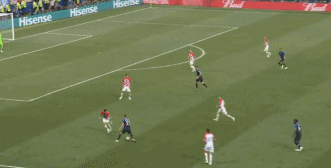 洛里搞笑失误 两队先后换人,克拉马里奇换下雷比奇,法国这边托利索换下马图伊迪。第77分钟,拉基蒂奇禁区前沿一脚劲射稍稍偏出。法国队用完换人名额,费基尔出场换下吉鲁。81分钟,皮亚察上场替换下斯特里尼奇。第87分钟,费基尔远射偏出。比赛补时五分钟。90分钟,托利索被踢倒,裁判给了任意球。93分钟,博格巴无人盯防没能打上皮球。最终法国队4-2击败对手,这也是世界杯决赛历史上第二大比分,仅次于1958年世界杯决赛巴西5-2瑞典。