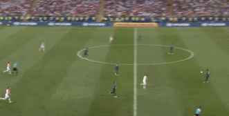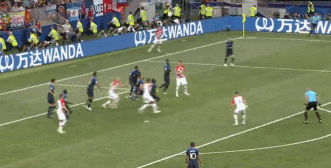 格列兹曼点球 第33分钟,格列兹曼开出角球,皮球似乎打中佩里西奇手臂,主裁判通过VAR判罚了点球,格列兹曼主罚骗过门将将球罚进,2-1,法国队再次领先,这也是他本届比赛的第4个进球。第42分钟,洛夫伦禁区左侧一脚劲射被后卫堵出。第44分钟,法国后卫瓦拉内受伤倒地。比赛补时三分钟 半场比赛结束,法国暂时2-1领先克罗地亚。 易边再战,第46分钟,格列兹曼一脚远射被门将稳稳扑住。1分钟中,雷比奇一脚爆射极具威胁,洛里飞身将球惊险扑出。第49分钟,弗尔萨利科外围一脚远射偏出。第52分钟,姆巴佩右路强行突入禁区,他的低射被门将扑出,极具威胁。