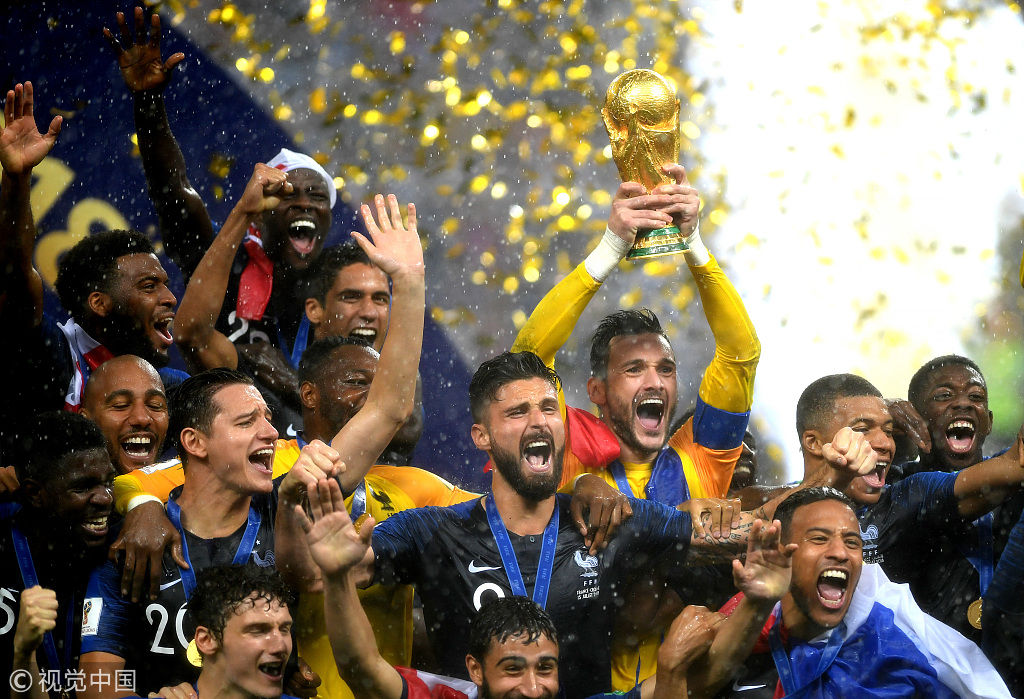 法国4-2战胜克罗地亚 北京时间7月15日23:00,2018俄罗斯世界杯决赛,法国与克罗地亚迎来终极对决。上半场,格列兹曼导致曼朱基奇自摆乌龙,国米大将佩里西奇劲射扳平比分,随后主裁判通过VAR判给法国一粒点球,格列兹曼主罚命中再次超出比分。下半场,格列兹曼助攻,博格巴破门再下一城,姆巴佩锁定胜局,洛里失误曼朱基奇为克罗地亚再扳一球。最终法国4-2击败克罗地亚,时隔20年再次夺得世界杯冠军,这也是他们历史上第二次捧得大力神杯。 法国近6届世界杯3次打进决赛,克罗地亚则是首次进入洲际大赛决赛。法国前3场淘汰赛都是在常规90分钟时间内赢得了胜利,而克罗地亚则经历了三场加时赛以及两场点球大战。