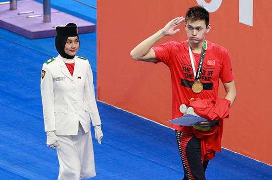 入水后,孙杨刚开始并不占优势,200米后,孙杨排在第二位。之前在接受采访时,孙杨说由于亚运前的训练中长距离较多,因此速度感没有那么强。孙杨慢慢赶上,直到400米时,孙杨已经排在第一位。随后,孙杨保持并持续扩大优势,稳稳夺得冠军。 ![]()