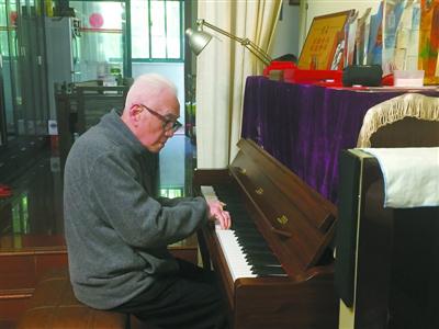 饶平如自学了弹钢琴,乐此不疲。