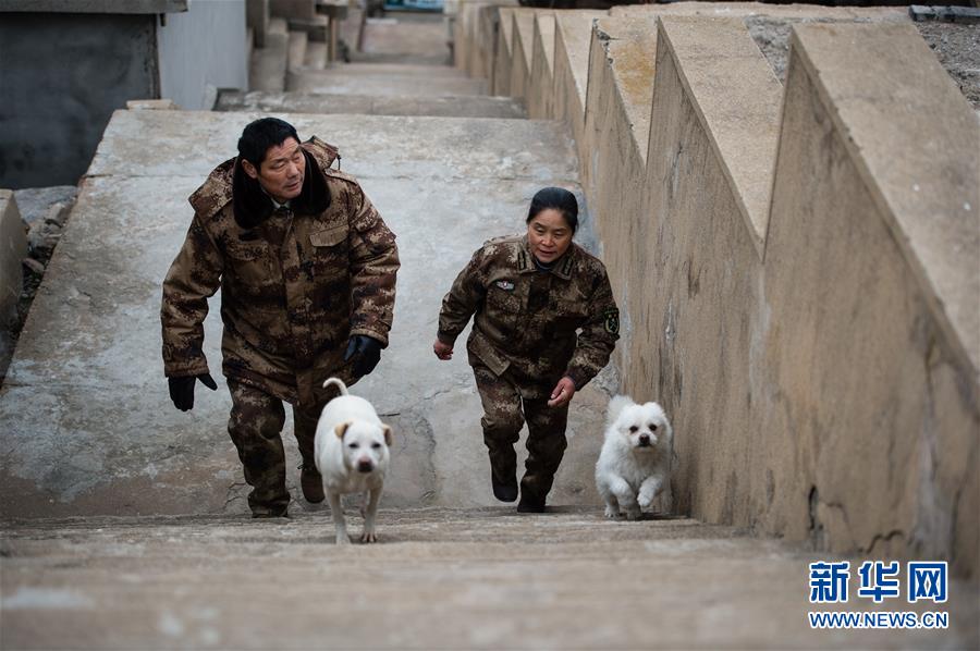 王继才夫妇在江苏开山岛上例行巡岛(2017年2月21日摄)。新华社记者 李响 摄