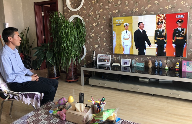 王有德长子王立钧观看国家勋章和国家荣誉称号颁授仪式直播