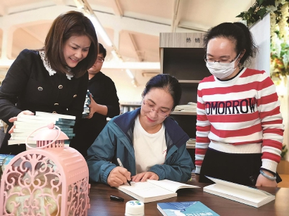![]() ![]() 查琼芳为读者签名 郭新洋 摄 ![]() ◆三女将与郑军华领队合影(右一为查琼芳) ![]() ![]()