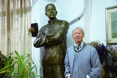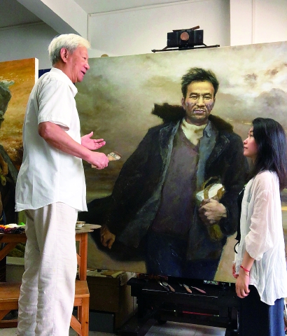 ![]() 恽圻苍和孙女锳子 ![]() 恽圻苍和他创作的恽代英雕塑作品 他,今年88岁,依旧手握调色盘,坚持站在专用的梯子上作画;他,是中共早期重要领导人之一恽代英烈士的堂弟,把对堂兄的深情缅怀融化在自己的作品中;他就是我的远房叔叔,离休前广州美术学院研究生导师、油画系主任,广东省美术家协会近代历史画创作顾问,中国美术家协会会员恽圻苍教授。七一前夕,我和叔叔通了电话,我们的聊天就从英雄情长、兄弟情深开始。 □恽甫铭 引他前进的指路灯 恽圻苍是恽代英牺牲后第二年出生的。“关于堂兄的英雄事迹,很多是从嫂嫂沈葆英、代英胞弟子强那里了解到的。”在嫂嫂家,他有机会读到了恽代英的亲笔日记。“世界上没有一帆风顺的革命,挫折是不可避免的。要经得起挫折,不怕失败的人才是能取得胜利的人……”日记里,堂兄充满激情的革命思想成了指引他前进的灯,也让他萌生了创作恽代英英雄形象的心愿。“离休后,一个念头越来越强烈:我要创作一批表现代英舍生取义崇高精神的作品来纪念他。”圻苍叔叔说。 1986年,恽圻苍走访了南京、上海、武汉等参加过“五卅”运动、听过恽代英演讲的前辈,也为南京雨花台烈士纪念馆创作了恽代英“五卅”演讲的大型油画。后来,他又创作了不同时期恽代英的艺术形象。 “浪迹江湖忆旧游,故人生死各千秋。已摒忧患寻常事,留得豪情作楚囚。”堂兄的这首《狱中诗》一直铭刻在恽圻苍心中。他搜集图文资料,到烈士就义的江东门国民党陆军监狱遗址考察。按照油画创作所需的角度他先做了一尊头像;全身泥稿完成后,拍了照分别寄给烈士儿子恽希仲、堂孙恽铭庆和我征求意见。雕塑以监狱墙面为背景,上面镌刻周恩来题写“狱中诗”手迹,突出烈士高大的肢体造型和睿智目光,庄重而亲切。作品最终定稿为2.9米高全身雕像:恽代英右肩斜靠墙壁,眼光透过高高的牢房铁窗,迎着灿烂的外部世界,神情是那么自信…… 2005年4月5日,恽圻苍由我们亲属一行陪同,护送这尊震撼人心的铸铜雕像,隆重地捐赠给了南京雨花台烈士纪念馆,完成了自己多年的宿愿。这也是恽圻苍最重要的作品之一,立体地表现了恽代英“舍身就义、革命精神升华的最壮烈、最感人一幕”的《狱中诗》。2015年8月12日,恽代英诞辰120周年纪念日,他又复制了这尊铸铜雕像捐赠给了首次开馆的常州恽代英纪念馆。 在恽代英生活战斗过的武汉、广州、常州、上海、南京,大都有恽圻苍创作的恽代英肖像和雕塑。他把对堂兄的深情缅怀融化在了自己的作品中。 艺术人生的“压轴戏” 广州,娇艳的木棉花灿若云霞,电话那头,爽朗的笑声不时传来:“抗疫期间,我创作了《冼星海——黄河激荡中的乐思》、重画了《焦裕禄到兰考》,还开始重画早期作品《洪湖红》等历史题材油画。” 70多年的努力,确立了恽圻苍中国著名艺术教育家和肖像油画家的地位。上世纪50年代,他创作《洪湖黎明》,一举成名;60年代,恽圻苍在中央美院油画研究班的毕业创作《洪湖红》,是一幅思想性强、艺术形式创新的作品,因为种种原因,这幅3米宽的原作被毁。恽圻苍的历史题材画和肖像画充满正能量,写意、凝重、抒情,直抵人心,艺术地定格了时代的一个个瞬间,产生过广泛的影响。 还记得30年前,东、西德宣布统一那天,圻苍叔叔正好在柏林考察。面对最后一截柏林墙,他突发感慨,禁不住浮想联翩——那被推倒的柏林墙,不正可以作为融合、和平、自由的绘画象征吗?作为有责任感的中国艺术家,应当对世界和平事业有所贡献……强烈的创作欲望油然而生! 三年前的春节,圻苍叔叔曾来信告诉我,他准备为自己的艺术人生筹划一台“压轴戏”,举办《人·墙——崛起的20世纪》艺术大展:这是一个由形式风格多样的18幅历史组画呈现,有《近代中国睁眼看世界第一人——林则徐》《辛亥革命》《洪湖红》《怒吼吧黄河》《不容选择性忘记历史》《醒狮——中国人民站起来了》《艰辛探索》《改革开放》等作品。为此他拼足劲头争分夺秒积极创作,即使今年抗疫期间,他也没放下手中的画笔! 有道是“老骥伏枥,志在千里”。圻苍叔叔一直在与时间赛跑!耄耋之年搞这台“压轴戏”,岂止是向生命挑战?更是向自己的思想维度和艺术高度挑战啊! 这个以独特的艺术形式展示20世纪历史画卷的展览得到了众多门类的艺术家积极参与。艺术大展筹备至今已完成了一大半。多么期待,恽圻苍艺术人生“压轴戏”早日圆梦! 永不止步的艺术家 在同道眼里,恽圻苍是风趣、睿智、充满活力的艺术家;在学生眼里,恽教授是教学认真严格的好导师;在研究生孙女锳子眼里,爷爷是慈祥又可爱的,她常说:“爷爷在艺术创作上的坚持和追求对我影响很大,在学习上则抱以开放的态度、鼓励的方式。”圻苍叔叔笑着对我说:“我的优点是做事认真,缺点也是认真,其实不用费那么大劲儿,但我就是死心眼。” 确实,恽圻苍是个不知停歇、永远在路上的艺术家,他腰背笔直,完全不像近90岁的老人。他也总是忙忙碌碌,问他为什么这么“忙”,他说:“这么大年纪了,都是自己的事。活着就是活着干活!”去年,恽圻苍身体有恙,“微创”手术后,应该好好休息,可他第二天就从床上坐起来,要求提供纸、笔,写平时没空写的回忆录。他觉得“住在医院,时间太奢侈了”。 终于明白,圻苍叔叔为什么要和时间赛