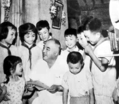 ![]() 杨小仲 ![]() 杨小仲和家人在一起。 ![]() 杨小仲指导小演员拍戏。 这是一张被损坏的黑白照:1963年,中国第二届电影百花奖获奖者和中央领导的合影。中央领导是周恩来总理、陈毅副总理。共二十人,前面坐一排,后面站两排。周总理坐哪里?前左二位置。陈毅副总理则在右一座位(已被撕)。前排中间坐者为谁?一微胖戴眼镜穿深色中山装的笑颜长者。此照第二天在报上刊出,众人惊疑:总理坐边上,这中间的“重量级领导”是谁? 不是“领导”,是“双百导演”杨小仲。“双百”指:一生编导百部电影,恰逢当年喜获百花奖。 那天,电影界各路英豪要周总理居中坐,总理说:“今天主角是你们。中间位置我不坐。”遂有了这张因导演《孙悟空三打白骨精》获最佳戏曲片奖的杨小仲坐中的“群英照”。 这张放大的旧照,当年杨小仲从北京带回上海,一直压在居所的写字台玻璃板下,后抄家时被撕去一部分。杨小仲当年居所:乌鲁木齐中路400号,一幢顶层斜坡红瓦、细条玻璃长窗、外墙白色的法式洋房。 在家里,杨小仲童心未泯 1899年出生于常州的杨小仲,今年121周年诞辰。 1963年,杨小仲最小的儿子杨勉9岁。他当时看过《孙悟空三打白骨精》,父亲编导的电影《兰兰与冬冬》也看过,之后印象深的有《宝葫芦的秘密》。其时全国少年儿童几乎都看过这部电影,为其中的电影特技着魔,一起做充满魔幻想象的宝葫芦美梦。电影在哪看的记不清,不是在上影厂大礼堂,就是自己买票到电影院看。父亲当年的特别待遇,是可以拿几张上影厂观影票回家,随后挈妇将雏去看一场自己拍的电影。 童年,父亲留给儿子的印象和电影有关又无关。杨勉一年级时,在家里那间30多平方米大屋子里,父亲或沉思,或昂首,踱起方步,在打蜡地板上走来走去,突然叉腰对儿子说,“我神气吗?”在沙发上的儿子仰脸看,父亲已花甲,不高的身材,玳瑁眼镜,还胖。儿子不会恭维父亲,也不知父亲拍了40年电影的“丰功伟绩”,口无遮拦冲出一句:“你这样胖,像电影里的鬼子小队长。”父亲一愣,笑起来,随后对儿子说自己20多岁时,真演过一个人:卓别林。肥裤子,破礼帽,小胡子,大头鞋,还手握一根拐杖,嘴唇涂成黑色,走路迈着鸭子步。演出效果怎样?当时有几个不解风情的警察,冲进他演戏的咖啡店,要抓这个“疯子”。所以他对儿子说:“说我鬼子小队长,不是的。疯子卓别林,才是的。”然后他们一起笑哈哈。 父亲从来不打骂孩子。不但不打骂,还和他们一起玩。当年父亲培养的女导演殷子,为讨论《宝葫芦的秘密》剧情,一次次上门。来杨家,她常看到:杨导和家中几个孩子趴在地上,玩五颜六色的游戏棒。赢了,笑如顽童;输了,也会脸赤。殷子知道他是在“体验生活”,也笑,蹲着看,不打扰,让杨导童心挥洒。然后,他们关起门,碰撞宝葫芦的“奇奇怪怪的表现手法”。 平时杨小仲在家时间少。一是他要拍电影,二是他拍电影喜好实地实景,不喜欢摄影棚。实景常在外地,家里就少他身影。但他回家,要享受天伦之乐。最小的两个儿女杨勉和杨吉全,会缠父亲。父亲一人睡一张三尺半床,兄妹俩在床上为父亲敲背揉腿,得到的回报是教他们诵读毛泽东诗词。诗词在哪里?在家里抬头可见的墙壁上,悬挂的诗书卷轴,一首《沁园春·雪》,一首《清平乐·六盘山》。他们给父亲肩背敲一下,父亲就教他们一句,他们给父亲揉一下,父亲就纠正他们一句。抑扬顿挫,慷慨激昂,画意诗情。 旧居围墙,原来是戗篱笆的 今天的乌鲁木齐中路400号外,是两人多高的一长溜围墙,黄色。萧瑟梧桐在黑色的铁门外伫立。门紧闭。紧闭的门里就是那幢白色墙、红瓦顶的法式洋房。红瓦顶上还矗两根排烟的小烟囱,楼墙外,挂着一个个窗式空调外机。 杨勉和我,就站在他们旧居的马路对面。那堵院外的黄墙一直向南延伸,到淮海中路口,再向西拐去。两条路的交叉口,说是现在上海网红拍照打卡地之一。原因是此中心街区,有棵百多年巨樟,树干粗茁,树冠铺展四围几十米,浓荫遮天蔽日。那棵百年巨樟,原是在他们家院子里的,现在路拓宽,巨樟被“贡献”到围墙外的马路上了。再有那旧居的围墙,现在是砖墙,过去则是竹子编起来的戗篱笆,一色的黑。一根根细长竹,编成厚厚的篱笆墙,遮蔽了院内,又留有想窥视却见不到的细丝空间,墨竹通幽径,体现雅致建筑的神秘情调。 黑色戗篱笆里发生的故事,现在听来,不神秘,反而很富“革命激情”。 1956年,这幢法式洋房的杨小仲家,发生一件振奋人的事:杨勉的大哥杨纪高考考上了北工大,要去首都北京。 大哥临行前,父亲送他一本笔记本。打开扉页,两页通栏上部,是工农兵劳作与扛枪保卫祖国的形象,下部空白处,父亲写下密密麻麻一段话,竖行繁体字,如诗如歌—— “给纪儿:十八年的抚育,今朝把你献给祖国。我为你庆幸,为你祝贺……从此你踏上祖国需要的岗位,给了你终生奋斗的方向。努力吧,做到三好,莫辜负了祖国对你的培养。不要想念家,不要忘记家。生活在光辉的毛泽东时代,不论年轻人,老年人,都同样感受到无穷的幸福……为了壮丽伟大的祖国,为了光荣灿烂的将来,把一切献给党,把一切献给人民。不容许有点滴的个人打算。我再向你说一声:‘前途珍重’。我期待你获得巨大的成就。” 为表达郑重,杨小仲在工农兵图像和文字间的右边,贴上自己一寸头像照;文字右下角,端端正正,盖上自己的红
