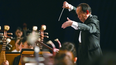 ◆何占豪在珠海经济开发区四十周年庆典上指挥演出