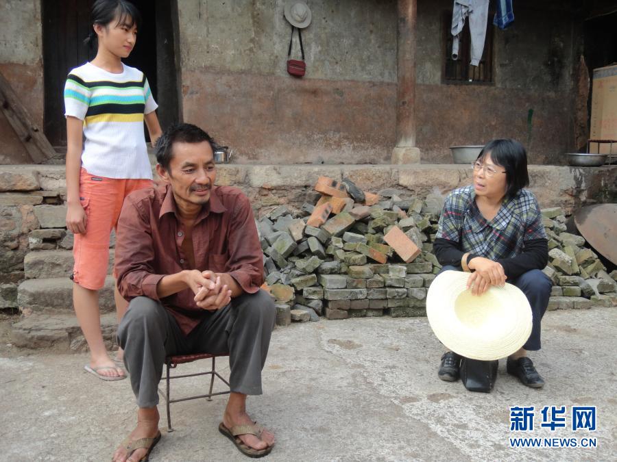 张桂梅(右)在进行家访(2011年7月摄)。新华社发(华坪县委宣传部供图)