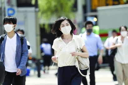8月4日,在日本东京,人们戴口罩出行。 新华社发