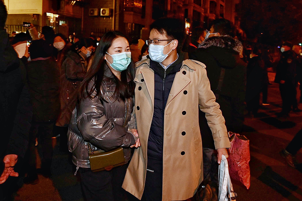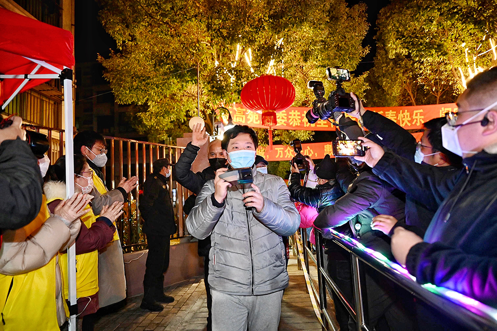 2021年2月19日,上海市浦东新区新高苑,解封后团聚的市民。