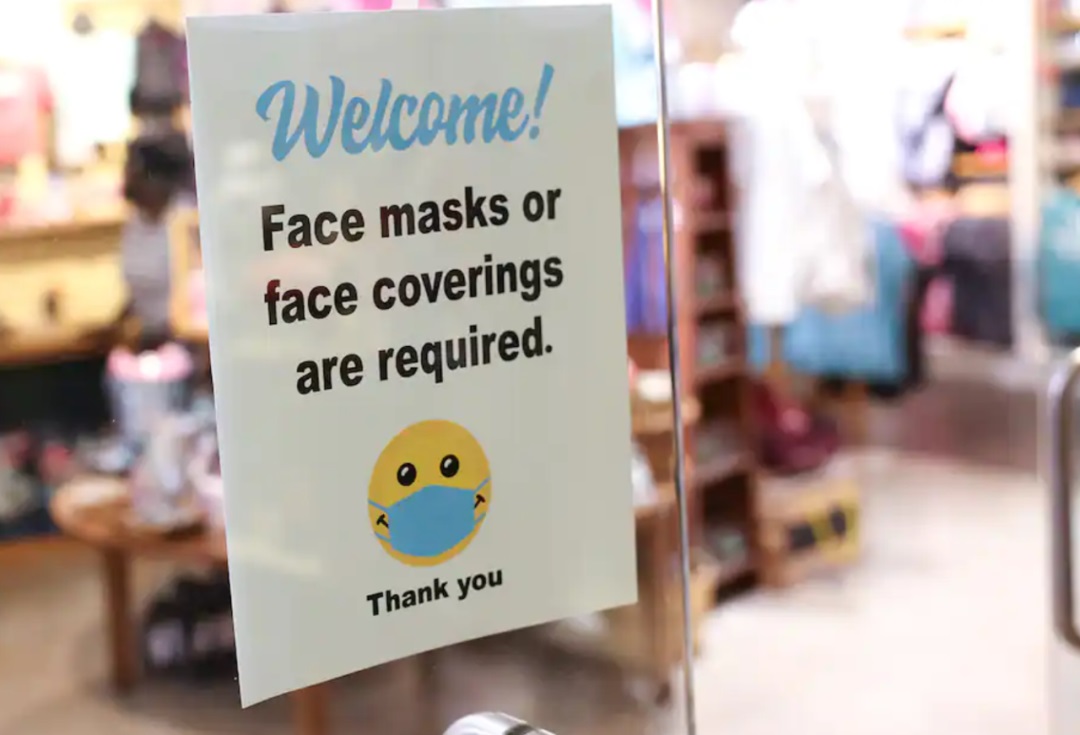 7月30日,华盛顿一车站商店外的标志提醒顾客佩戴口罩。图源:华盛顿邮报