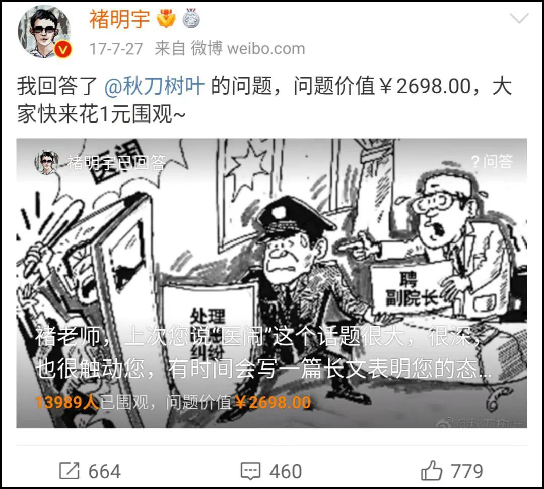 ![]() 最近这几天,网上最让人震惊和胆寒的事,就是湖南湘雅二院刘翔峰医生被举报医疗违规事件。 这两天,湖南卫健委和长沙市纪委监委都发了通报:刘翔峰涉嫌严重违法,目前正接受长沙市监察委员会监察调查。 ·湖南省卫健委关于刘翔峰事件的通报 ![]() 根据网上的举报内容,刘翔峰的医疗违规行为,数量上罄竹难书,性质上丧心病狂。 如果举报内容属实的话,那刘翔峰不但没资格做医生,连做人的资格都没有。他的种种作为,完全突破了人的底线。 可能还有不了解这事的朋友,我们后面会写篇文章,详细分析下刘翔峰的数十宗罪。 这篇文章我们就不展开来说了,就挑几个他恶劣的行为给大家看下: 切除患者正常器官:胰腺、脾脏; 切除患者正常器官:肠道; 哄骗正常患者进行肿瘤手术:手术过程中,未发现病变,就使用他人组织冒充患者组织; 哄骗患者花费高额医疗费:无需进行达芬奇机器人手术的患者进行机器人手术。 大家看看,这难道不是谋财害命吗? 说他是医生里的恐怖分子,不过分吧? 这事引起了这么大的震动,一方面是因为刘翔峰的凶残,另一方面是我们几乎每个人都会与医院打交道,难免有兔死狐悲之感。 试想一下,如果你去医院看病,碰上了刘翔峰这样的医生,那会是怎样的一种后果? 大概可能是:人为刀俎,我为鱼肉。 刘翔峰带来的影响太坏了。 他给整个医生群体抹黑了,更可怕的是,这件事可能会增加老百姓对医院的不信任感。 我认为,不管是为了依法追究犯罪行为,还是为了震慑医生里的害群之马,刘翔峰一定会受到非常严厉的惩处。 在刚看到这件事时,除了震惊和难以置信外,我还一下子想起了几年前,看到的一篇关于医闹的微博问答。 当年花一块钱围观的这个问答,给我留下了极其深刻的印象。 为了防止有人误解,我们要先声明下:我们不赞成违法违规的医闹行为,碰到医疗纠纷了,大家还是要依法维权。 褚明宇:我支持医闹 这篇问答文章的作者,出生于医学世家,亲戚朋友里一大堆医生,但他却态度鲜明地支持医闹这种行为。 下面我们来看看这条微博问答。 ·褚明宇关于医闹的问答文章 文章的作者叫褚明宇,经常玩微博的人应该都认识他。他是微博问答这个产品的顶尖作者。 他回答问题的单价高达数千元,而且每个问答花钱围观的人数,少一点的有几千,多一点的则有好几万。 褚明宇是那种家庭背景好,自己又非常聪明的那类人。 他在北大燕南园长大,本科毕业于北大物理系,后来到美国伊利诺伊大学读了电子与计算机博士。 褚明宇首先坦陈,他身边有一大堆医生。 他姥爷是个医生,他舅姥爷是医生,他舅舅是医生,他舅妈是医生,他二姨是医生,他表姑是医生,他前女友是医学博士后...... 用他自己的话说: 你可以这么描述我——褚明宇出生在一个医生世家,娶了医生的女儿,交过医生女朋友,平时经常跟医生朋友喝酒。并且,他支持医闹。 为什么他亲人中有这么多医生呢? 我特地去查了一下,发现他的外公齐镇佰是一位医学家,曾担任湖南医学院院长(现中南大学湘雅医院)。 这样论起来,褚明宇的外公齐镇佰和这次出事的刘翔峰,同属于湘雅系医院,只不过两人处于不同的年代,应该没啥交集。 身边的亲人好多都是医生,褚明宇为什么会支持医闹这种人人喊打的行为呢? 他在文章中讲了好几个故事,来说明医闹的合理性。这篇文章的内容很多,建议大家有兴趣的话,还是花一块钱到褚明宇的微博看看。 我们这里就重点概述下其中的四个故事。 第一个是他暗恋的美女医生的故事。 这事我们先按下不表,后面再重点说说。 第二个是他前女友闺蜜的故事。 他前女友的闺蜜,在北京一家著名三甲医院工作,他们一起吃饭的时候,一个保留曲目,就是听她讲各种跟病人斗气的段子。 每次她讲得都很嗨,但每次褚明宇都听得毛骨悚然。感觉她每天的工作最大满足的是把病人“治”了,而不是治了。 第三个他朋友妈妈的故事。 他一个朋友的妈妈,在上海一家大医院查出有子宫肌瘤,医生说:这星期正好病床有空,马上办住院做子宫切除手术吧。 这位朋友还想再等等看,医生却告诉他:要是我是你,我不会等。 朋友觉得很严重,就去找了另一位医生朋友咨询了下,得到的意见是: 子宫肌瘤很常见,并不一定要马上手术,而是应观察一段时间,看是不是有变化,是不是有其他症状,特别是更年期后的妇女,很多会自行好转的。 朋友就把这个意见告诉建议做手术的医生,那人马上暴躁愤怒了。 最后,这位朋友的妈妈没切子宫,而是去有熟人的医院复查,结果没有任何问题。 第四个是他前女友的故事。 这个故事就有点悲惨了。 他的前女友在上海一家顶级三甲医院体检,查出说有乳腺癌,需要立即手术。她一听就慌了,听话地做了切除手术。 出院之后,她还是很害怕,又到上海肿瘤医院,找了个乳腺癌专家讨论后续治疗。 肿瘤医院说,你得把原来手术的切片借出来,要不然无法诊断。 要切片的事,自然就交给褚明宇去办了。他跑到上一家医院费了九牛二虎之力,并且大吵了一架后,终于拿到了切片。 肿瘤医院病理科研究了下切片,结论是:并不能确定有乳腺癌。 她女友还是不放心,为看病干脆去美国工作了。美国医生的诊断跟肿瘤医院的一样:从切片上看不出有乳腺癌。 她现在很健康,只不过少了一边的乳房。 最后,我们再来看看褚明宇说的第一个故事。之所以要重点说说这个故事,是因