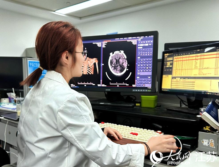 南京鼓楼医院住院医师何雪颖通过江苏省云影像平台为基层医院远程阅片。人民网记者 周梦娇摄