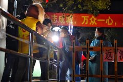 2021年2月18日晚十点四十,上海市浦东新区新高苑,小区内的志愿者与小区外的工作人员隔着栅栏交流。从2月19日0时起,浦东新区高东镇新高苑一期小区由中风险地区调整为低风险地区。自2月19日0时起,本市全部为低风险地区。这也意味着,上海中风险地区正式清零...