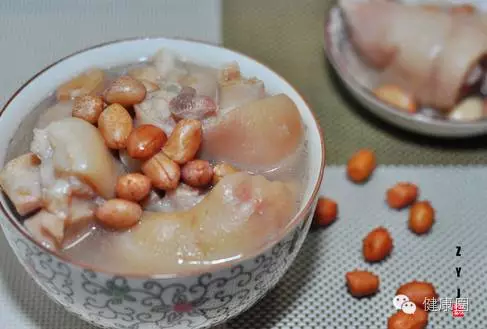 原料:排骨(根据自己喜欢来选择排骨),黄豆芽,葱段,姜片,盐,料酒。 做法: 1、把排骨剁成小块,然后焯水再清洗干净。 2、黄豆芽清洗干净和排骨一起放入煲锅中,加入适量的清水(最好不要在中途在加水)和姜片,用大火烧开后转小火来煲制。 3、大概煲1小时左右排骨和黄豆芽就软烂,汤汁浓郁。这个时候关火把姜片拣去,放入盐和料酒,撒上葱段就可以喝了。 花生猪蹄汤