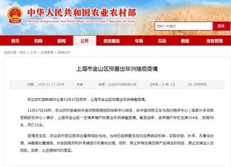 11月17日16时,农业农村部接到中国动物疫病预防控制中心报告,经中国动物卫生与流行病学中心(国家外来动物疫病研究中心)确诊,上海市金山区一生猪养殖户排查出非洲猪瘟疫情。截至目前,该养殖户存栏生猪314头,发病50头,死亡11头。 疫情发生后,农业农村部立即派出督导组赴当地。当地已按照要求启动应急响应机制,采取封锁、扑杀、无害化处理、消毒等处置措施,对全部病死和扑杀猪进行无害化处理。同时,禁止所有生猪及其产品调出封锁区,禁止生猪运入封锁区。目前,上述措施均已落实。