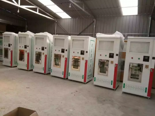 图片说明:还未贴牌的自动售水机 在一个名为“自动售水机”的内部QQ交流群,多位群友向记者表示,他们均从事售水机代加工生产,“代理商想做什么牌子可直接贴标”。一位卖家称,他销售的自动售水机为自家生产,配件可自行更换,随机附带“水质检测报告”,无人监管。